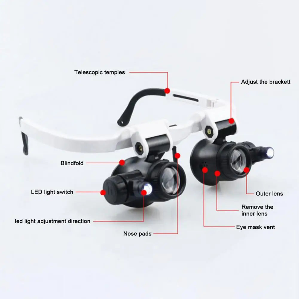 Head-mounted Led Magnifier Loupe for Jewelry, Watch Repair, Reading with High-power Glasses Microscope