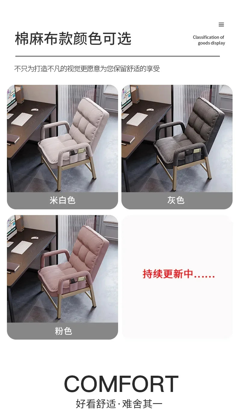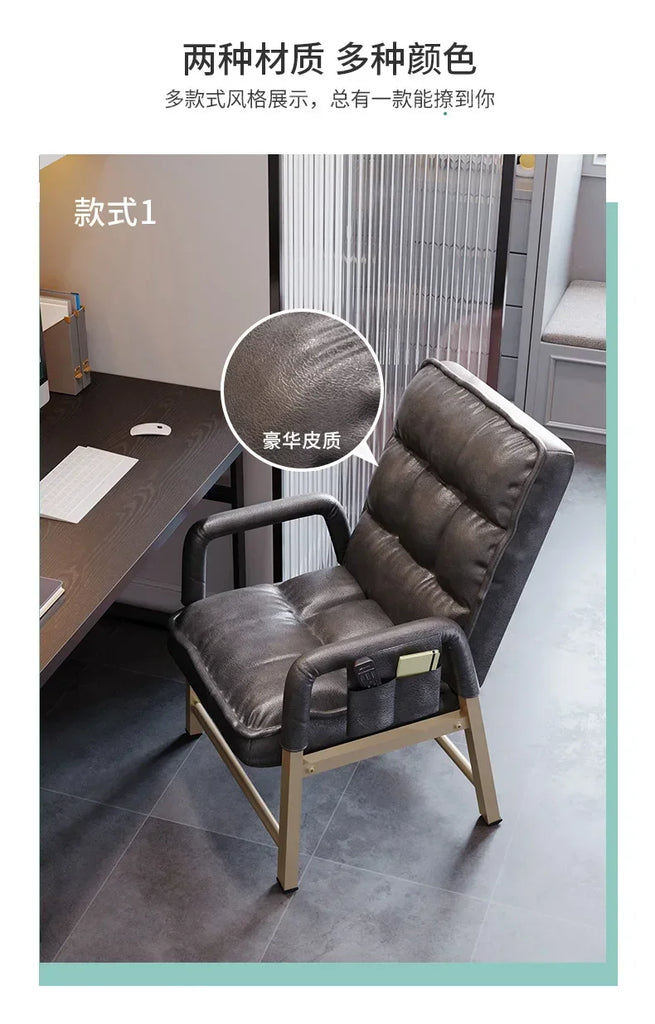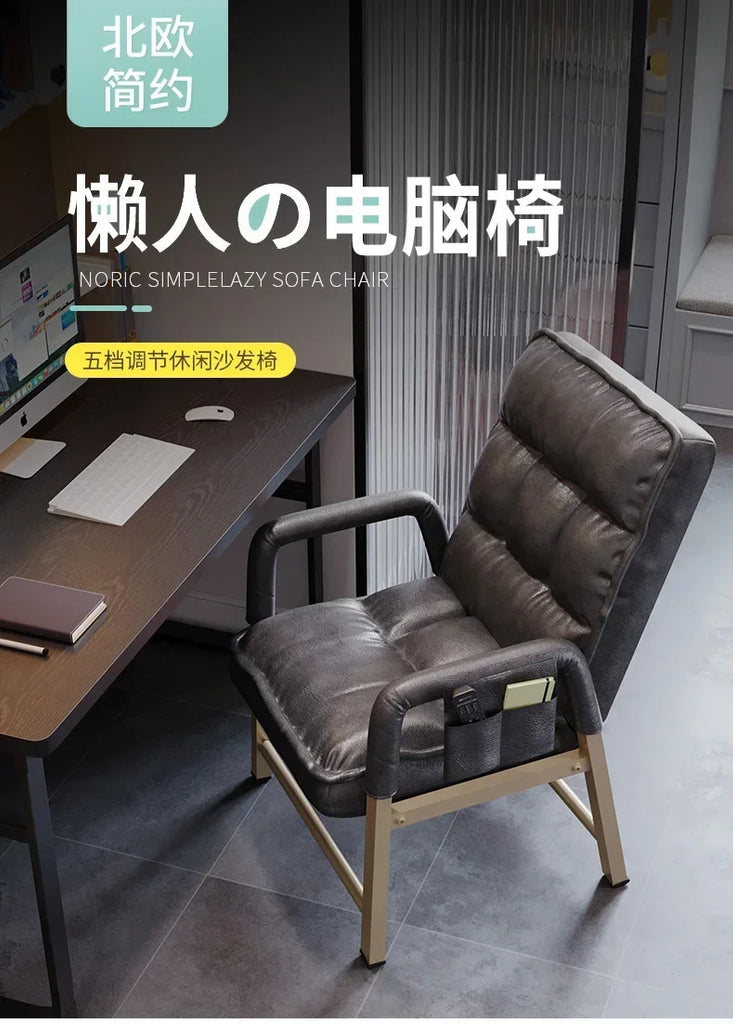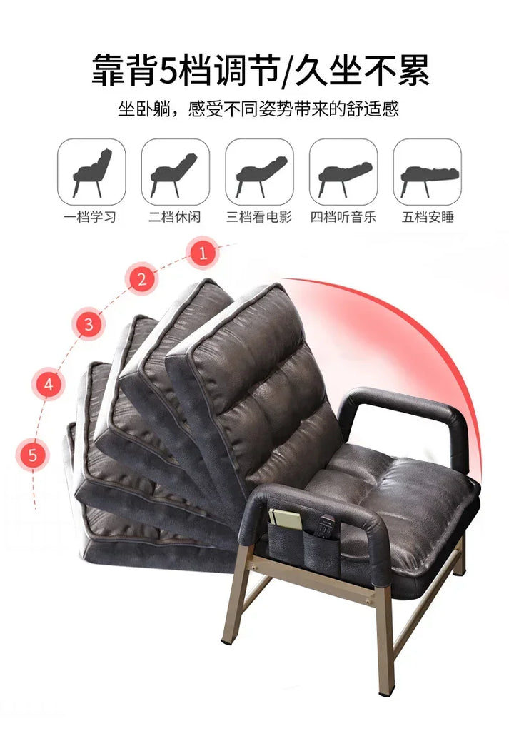 Adjustable Metal Study Chair with Storage Bag for Office & Bedroom, 5-Position Backrest, Anti-Collapse Design