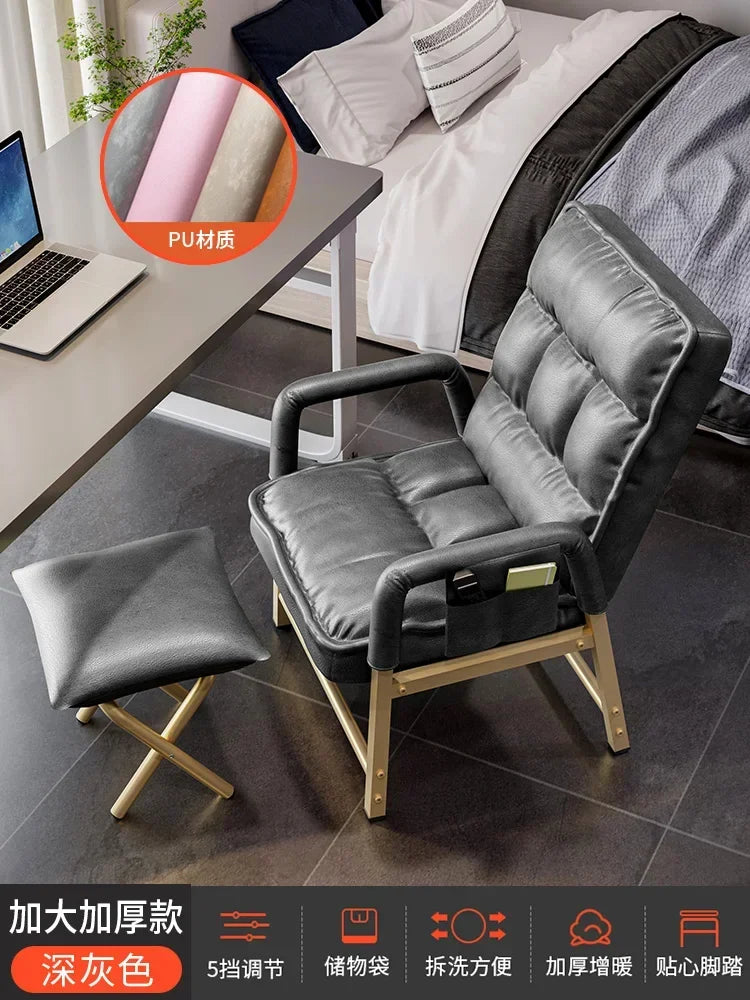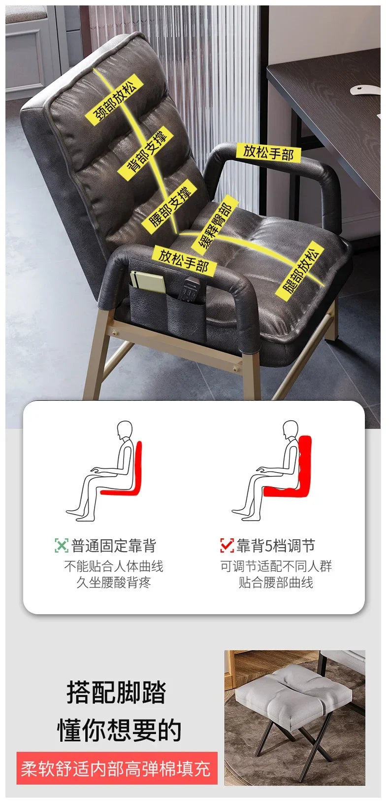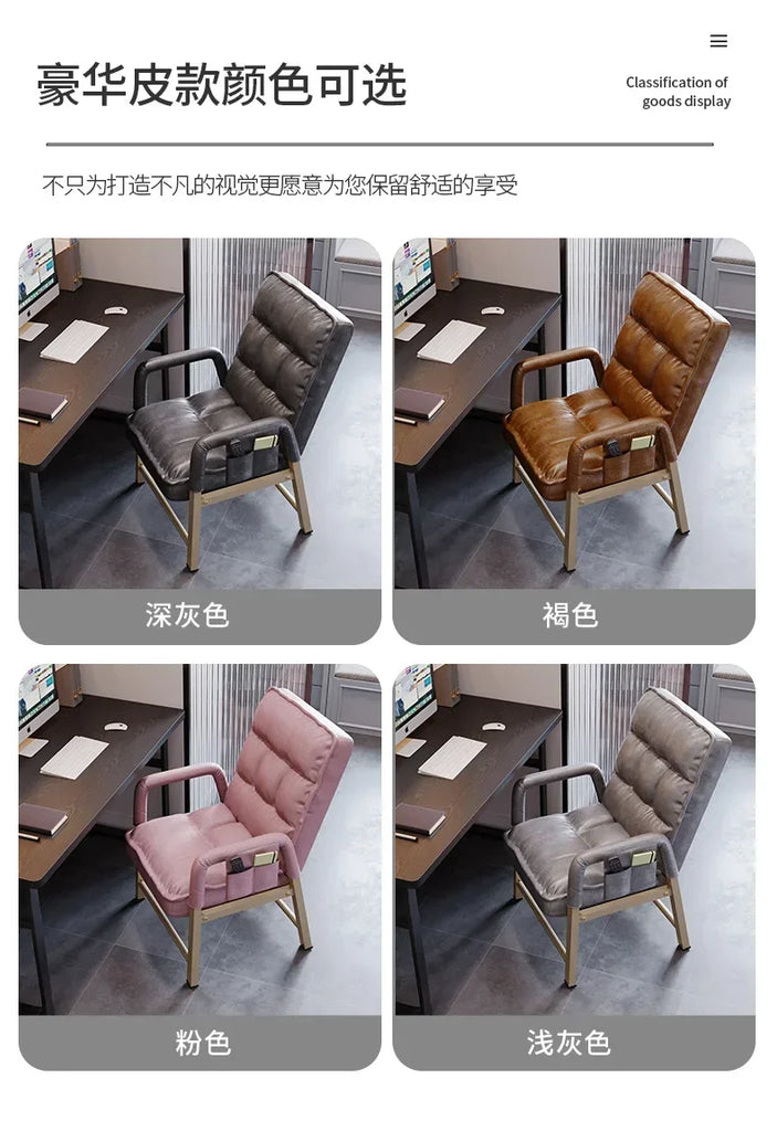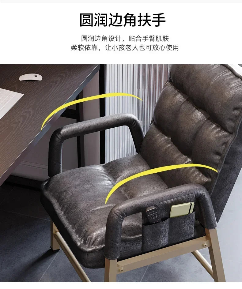 Adjustable Metal Study Chair with Storage Bag for Office & Bedroom, 5-Position Backrest, Anti-Collapse Design