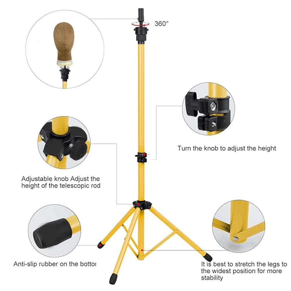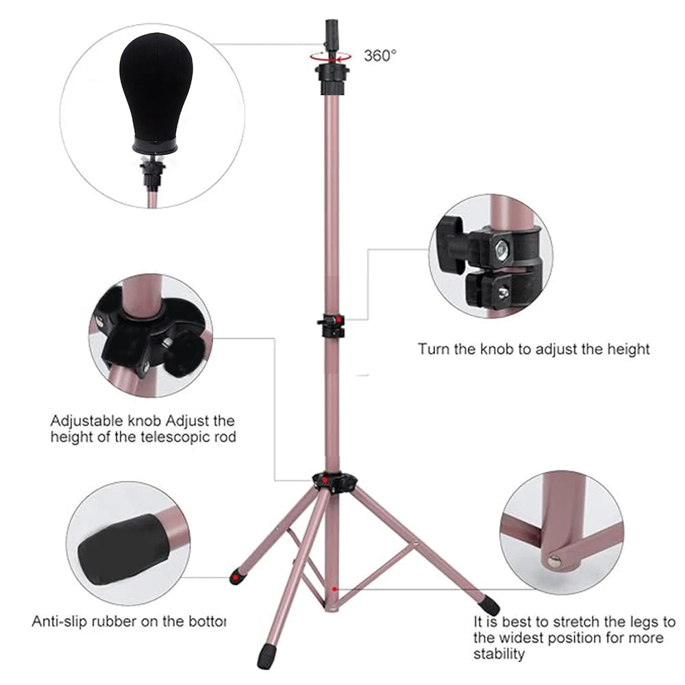 Adjustable Metal Wig Head Stand Tripod for Cosmetology Hairdressing Canvas Mannequin Heads