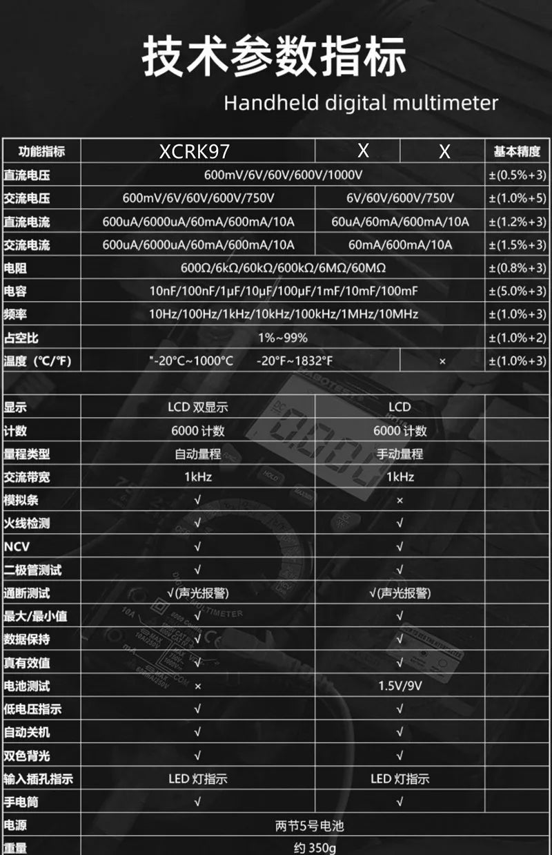 Digital Multimeter Auto Range NCV True RMS AC/DC 6000 Counts Professional Testing Device