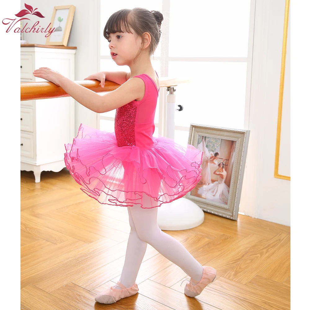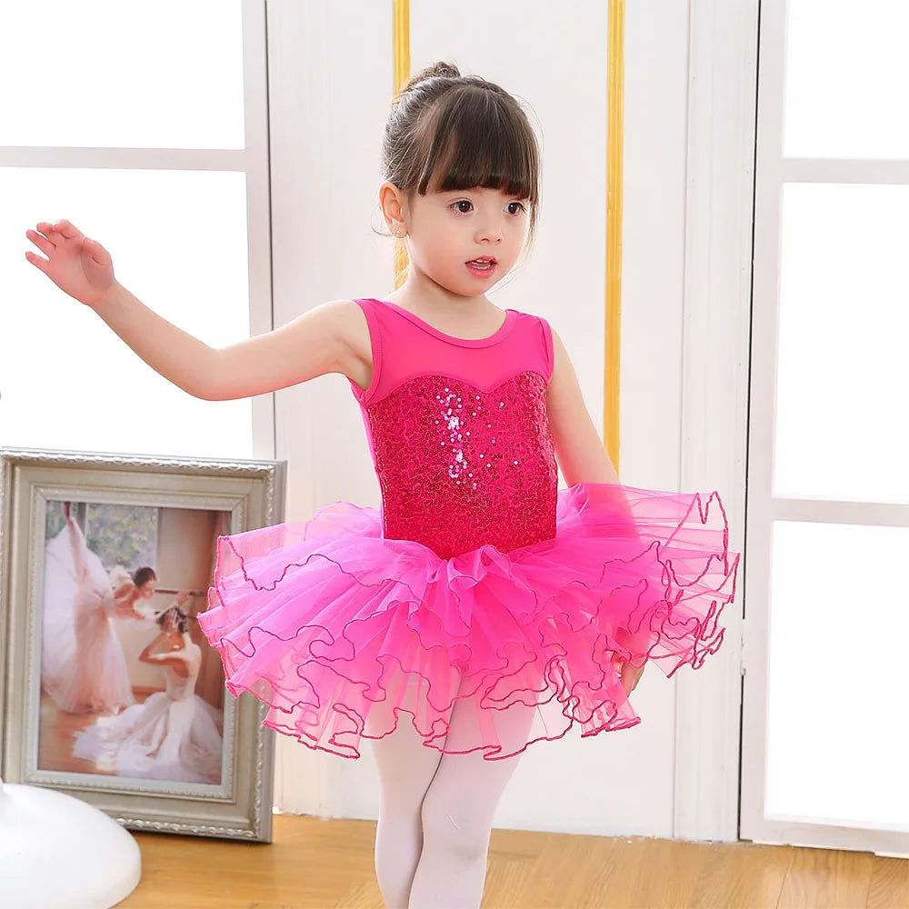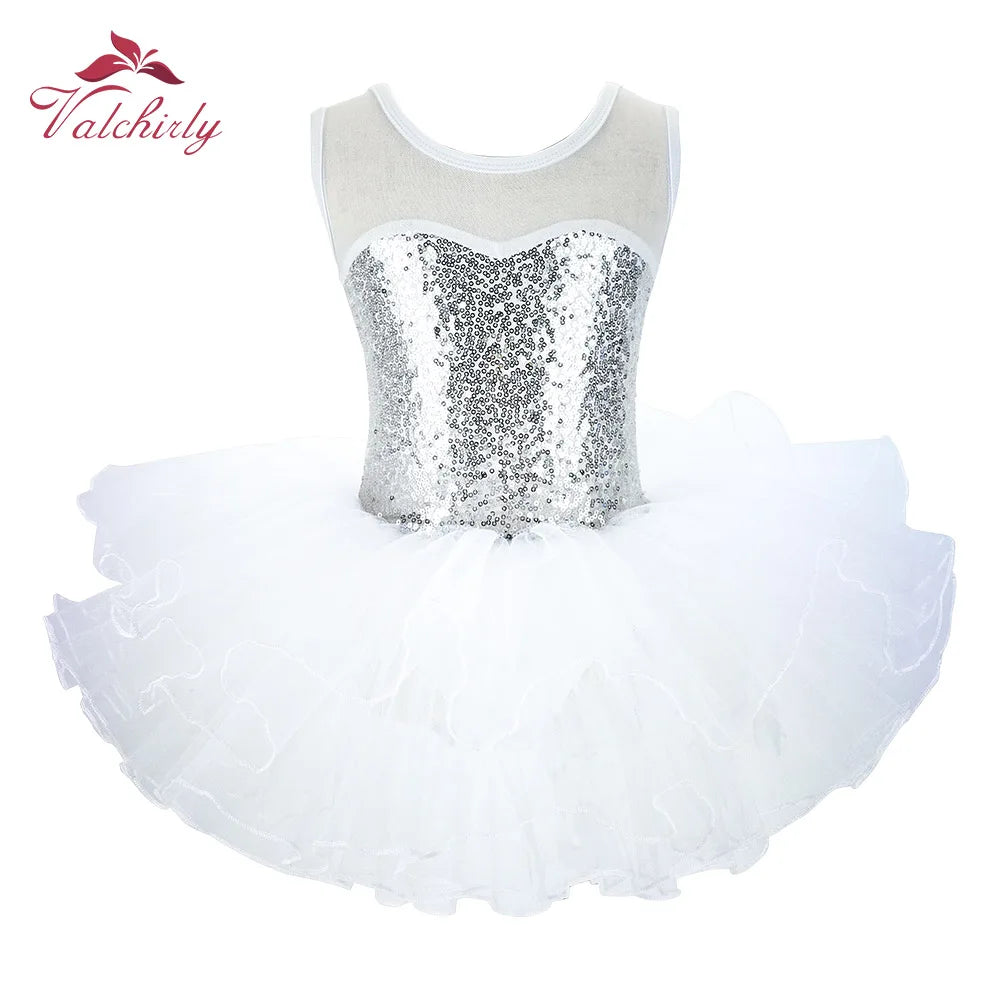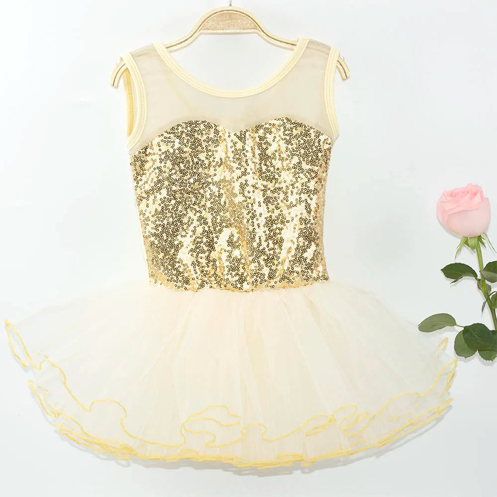 Ballerina Fairy Kids Costume Sequined Flower Dress Tutu Dancewear Ballet Leotard Gymnastics Party Outfit