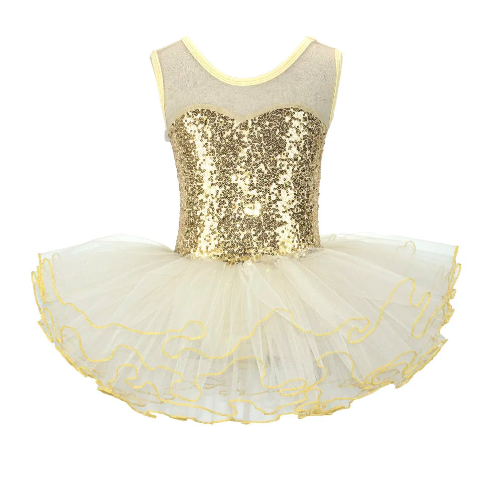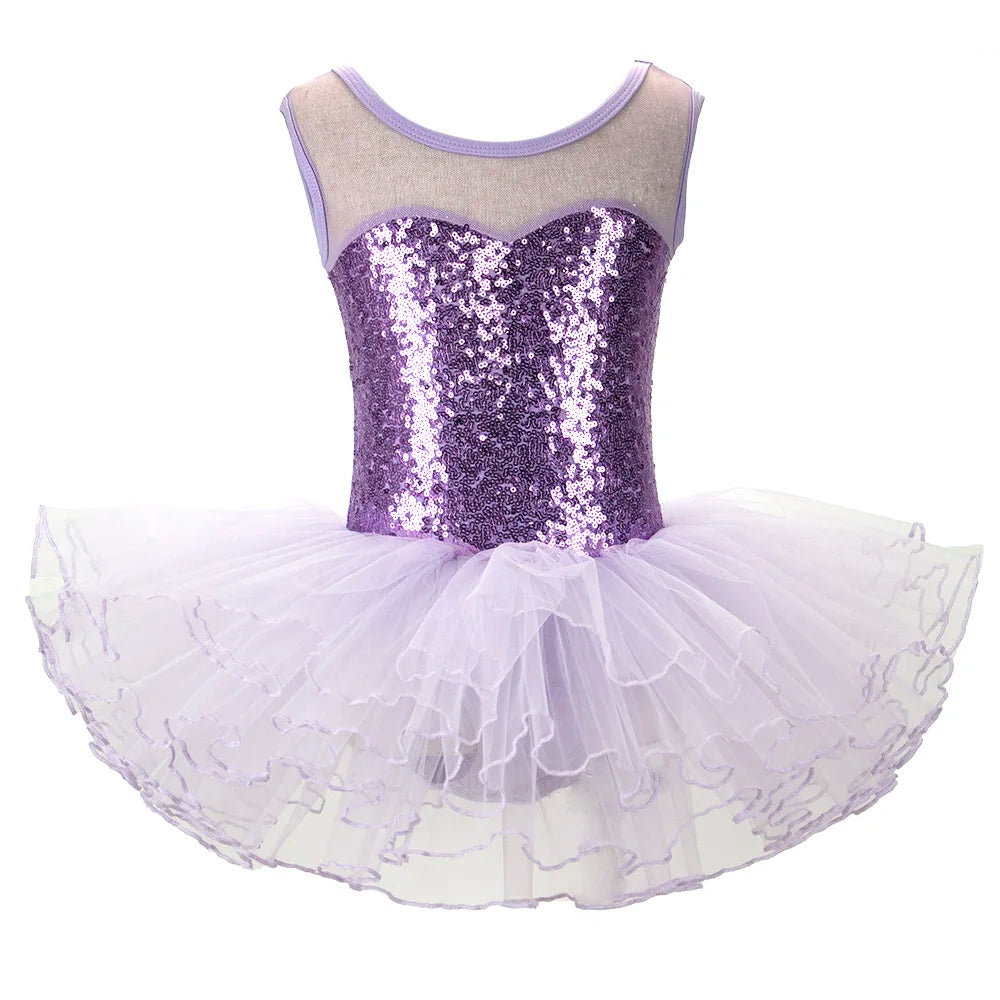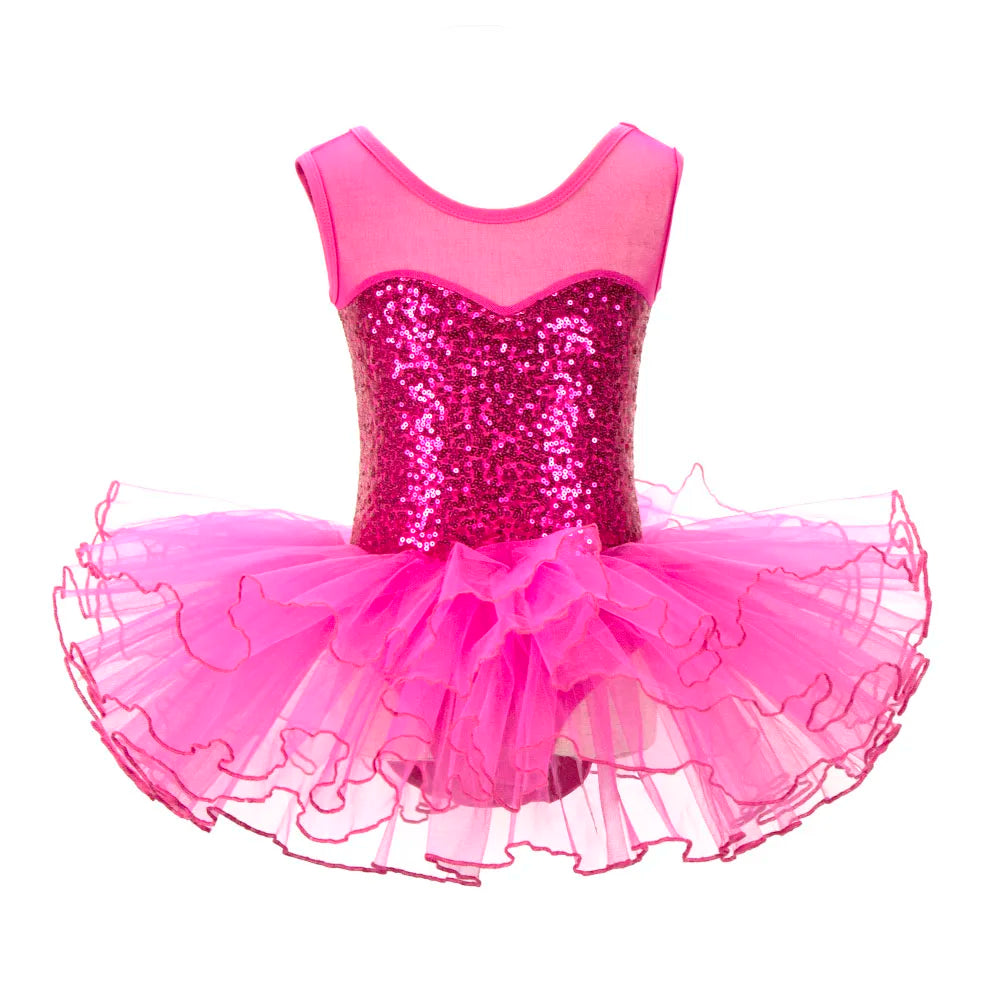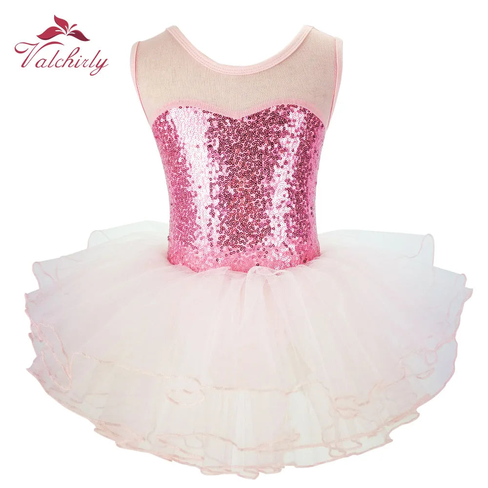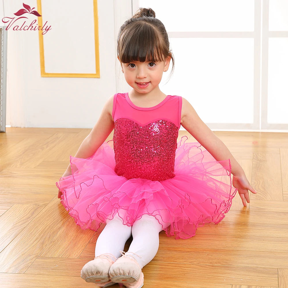 Ballerina Fairy Kids Costume Sequined Flower Dress Tutu Dancewear Ballet Leotard Gymnastics Party Outfit