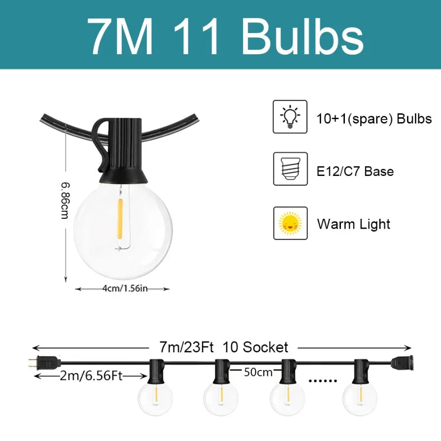 Dimmable LED G40 Outdoor String Lights for Patio, Garden, Party, Wedding, Camping, Decorations