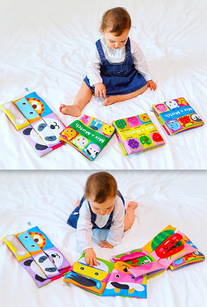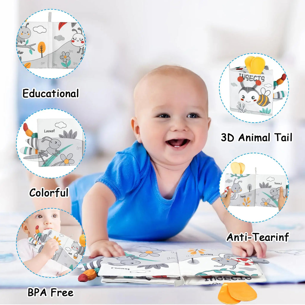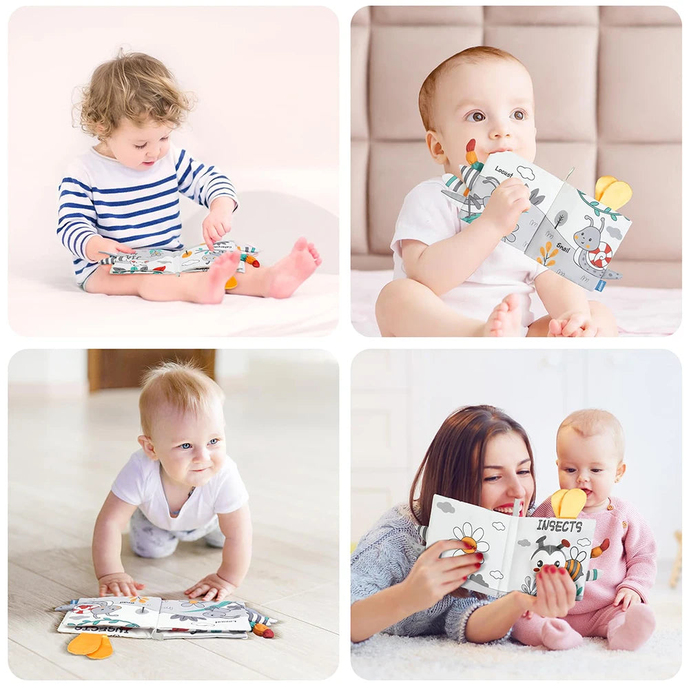 Each page offers a sensory journey with varied materials, shapes, and colors. Equipped with integrated BB sounds and crinkle paper, they create delightful noises that stimulate curiosity and keep your baby entertained. Made from soft, durable fabric with a sponge interlayer, these books are ideal for teething and maintain their vibrant colors even after multiple washes.
