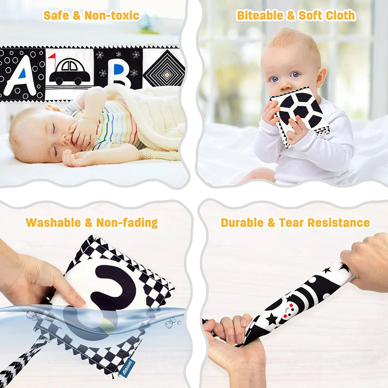 Conveniently portable, each book includes a handle for easy attachment to strollers or playpens, making them perfect for home and travel. As your baby explores these pages, their imagination and cognitive skills will thrive.