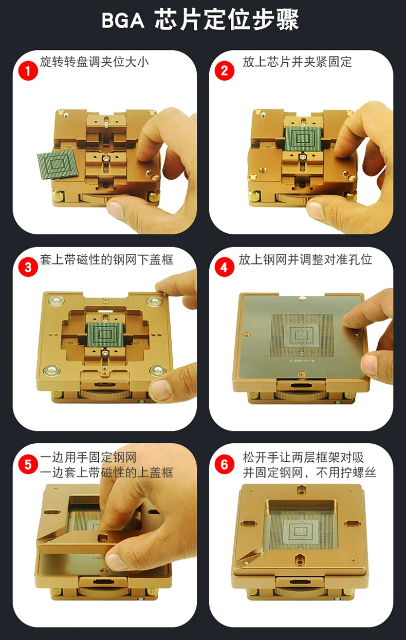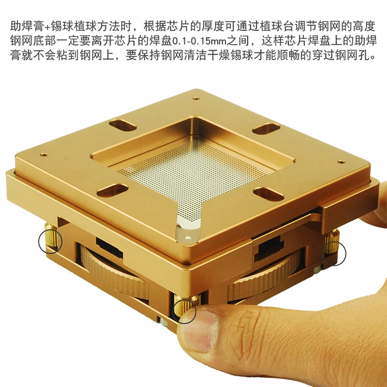 Adjustable BGA Stencil Holder & 12pcs Reballing Stencils for Mobile/Laptop CPU IC Chip Rework