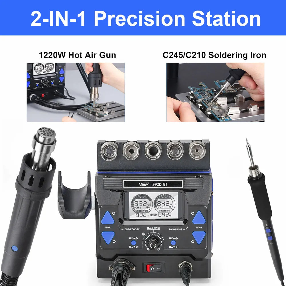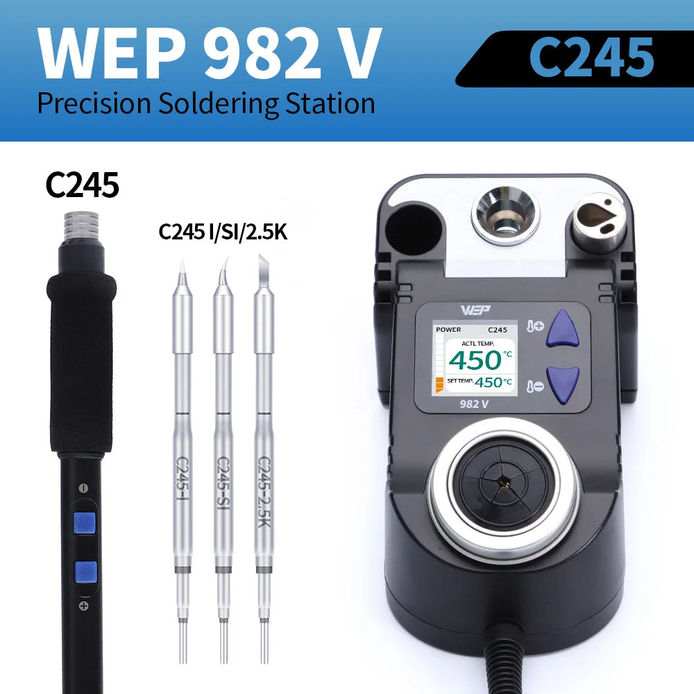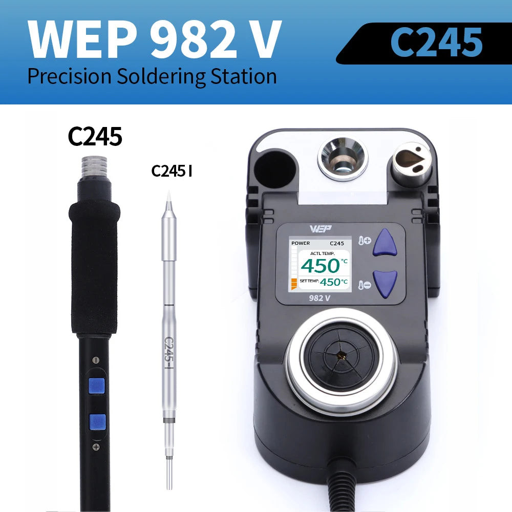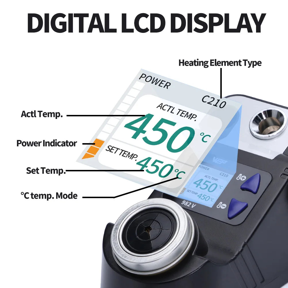 The 982V is equipped with convenient features like auto standby and sleep modes, saving energy while enhancing operational safety. It supports quick tip changes without the need for additional tools, ensuring seamless workflow. Digital temperature calibration maintains accuracy and consistency for all your soldering needs.